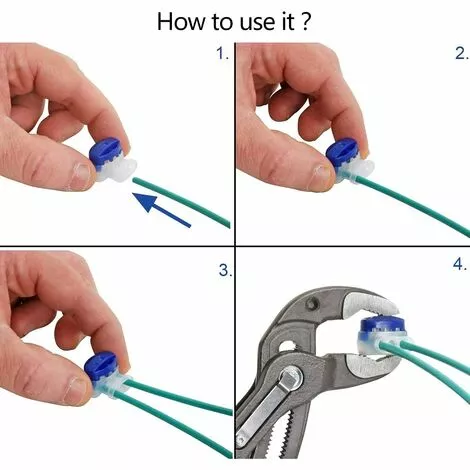 【Facile à installer】 Le connecteur du câble de la tondeuse peut être facilement connecté au câble de limite. Aucune soudure ou dénudage n’est nécessaire, insérez simplement le fil dans le connecteur électrique flexible, puis utilisez l’outil de sertissage pour serrer le couvercle bleu.