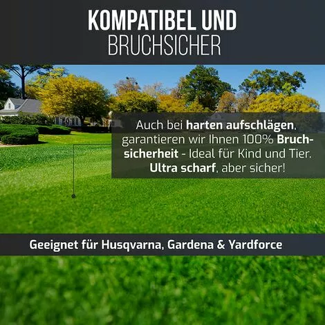 Coupes régulières : les lames de rechange ont une épaisseur de 0,75 mm et pèsent 3 grammes pour des coupes lisses et régulières sur toute la surface. Convient aux tondeuses à gazon de voiture. Des poids légèrement plus élevés n’utilisent pas de charges par essieu !